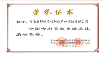 2017年1月由人力資源和社會保障部、國家知識產(chǎn)權(quán)局聯(lián)合舉辦的全國專利系統(tǒng)先進(jìn)集體和先進(jìn)個人評選中,公司榮獲“全國專利系統(tǒng)先進(jìn)集體”榮譽稱號