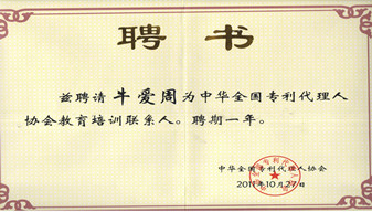 公司代理人被聘為中華全國專利代理人協(xié)會教育培訓聯(lián)系人。
